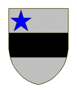 D’argent à la fasce de sable, accompagnée en chef, à dextre, d’une hermine de sable, ou d’une étoile d’azur.