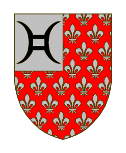 De gueules semé de fleurs de lis d’argent, au franc-quartier d’argent à Panifie, ou fer de moulin de sable.