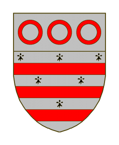 D’argent à trois fasces de gueules, accompagnées entre les fasces de six mouchetures d’hermine de sable, posées 3 – 2 – 1, au chef de gueules chargé de trois annelets d’or