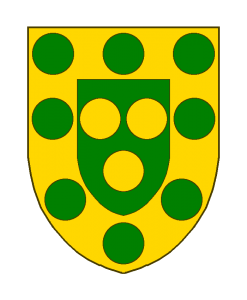 De sinople à trois besants d’or, à la bordure du même, chargé de dix tourteaux du champ (Pour D.P. la bordure est semée de tourteaux).