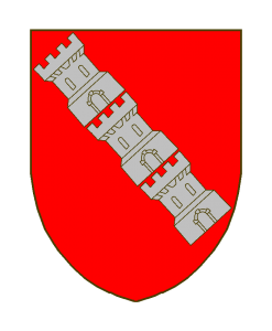 De gueules à trois tours d’argent posées en bande (parfois maçonnées de sable).