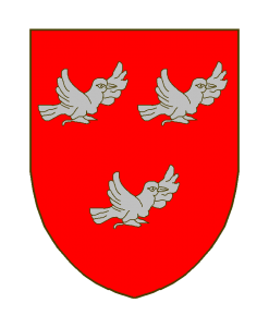 (En fait, ce sont des oiseaux qui ne ressemblent nullement à des canards, sur les monuments funéraires. Gourdet décrit, d’après Le Fort: d’or à trois merlettes essorantes de gueules, ce qui est certainement une erreur. Sur certains monuments sculptés, les oiseaux sont en effet contournés, notamment à Steinbach et à Grummelscheid).