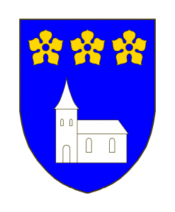 D’azur à la chapelle surmontée de trois quintefeuilles d’or, posées en fasce.