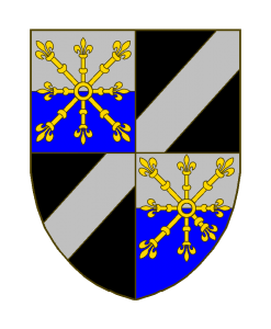 Écartelé: aux I et IV coupé d’argent et d’azur, à l’escarboucle d’or brochant, aux II et III de sable à la barre d’argent.