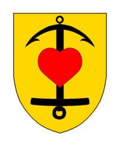 D’or à une ancre renversée de sable, chargé en abîme d’un coeur de gueules.