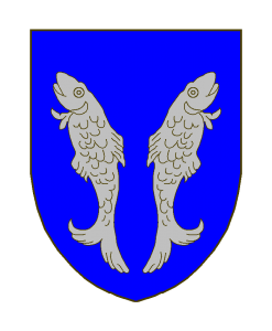 D’azur à deux poissons adossés d’argent (barbeaux).