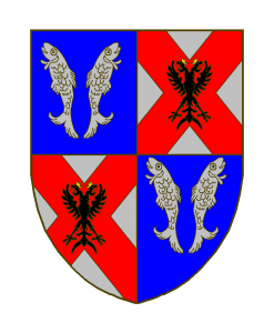 Écartelé, au I et au IV d’azur à deux barbeaux adossés d’azur, au II et III d’argent au sautoir de gueules, chargé d’une aigle impériale de sable couronnée d’or.