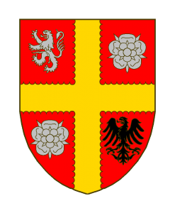 De gueules à la croix engreslée d’or, cantonnée au I d’un lion d’argent aux II et III d’une rose du même, au IV d’une aigle de sable.