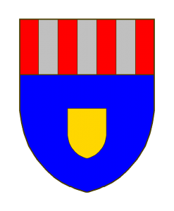 D’azur à l’écusson d’or, au chef de gueules chargé de trois pals d’argent.