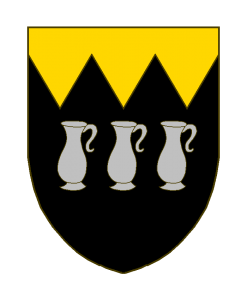 De sable à trois buires (ou aiguières, ou vases, ou bouteilles) d’argent, ansées du même, au chef emmanché d’or.