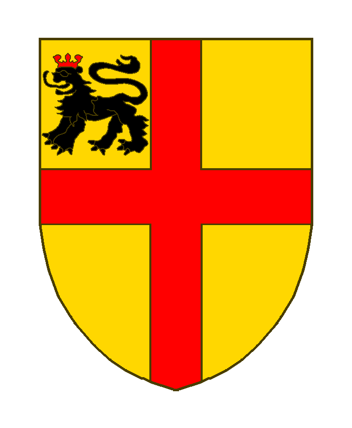Haraucourt – variante 3 Sizes: 150 × 150 / 247 × 300 / 700 × 850 de Haraucourt - variante 3 Armes: d’or à la croix de gueules, cantonnée au premier canton d’un lion passant de sable, inconstamment couronné de gueules. Sources du Dr. Loutsch: (S.L.). Zitiert nach (Quelle): A.L. Seite 411