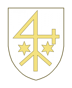 Une marque de marchand constituée par un chiffre 4, la traverse recroisettée, se terminant en pointe par trois pieds, accostée de deux étoiles à six rais.