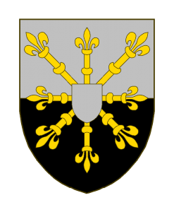 Coupé d’argent et de sable, à une escarboucle fleurdelisée d’or, chargé en abîme d’un petit écusson d’argent brochant.