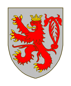 D’argent au lion de gueules, armé, lampassé et couronné d’or, la queue nouée et passée en sautoir.