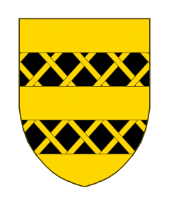 Une plante de rose au, entre deux proboscides aux armes de l’écu.
