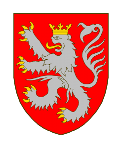 De gueules au lion d’argent, armé, lampassé et couronné d’or.