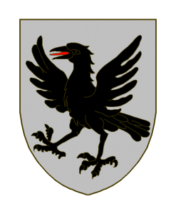 D’argent au corbeau de sable, au vol levé, lampassé de gueules.