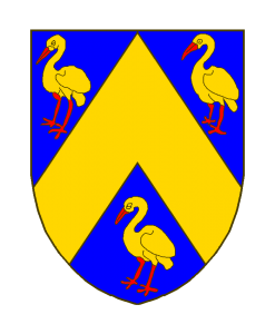 D’azur au chevron d’or accompagné de trois hérons du même, becqués et membrés de gueules.