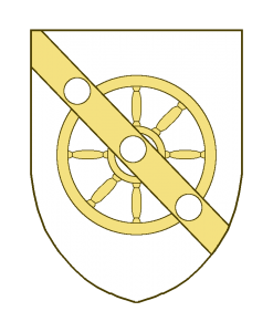 Une roue, à la cotice chargé de trois besants ou tourteaux, brochant.
