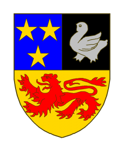 Coupé, au I parti d’azur à trois étoiles d’or, et de sable à une merlette d’argent, au II d’or au lion léopardé de gueules.