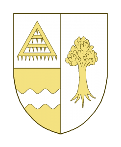 Parti au I coupé à une herse triangulaire, et à une fasce ondée, au II un arbre arraché.