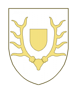 Un massacre de cerf, et un écusson placé entre les bois.