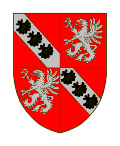 Écartelé: aux I et IV de gueules à la bande d’argent chargé de trois coquilles de sable, aux II et III de gueules au griffon d’argent.