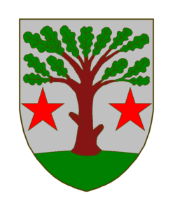 D’argent à une chêne au naturel, accosté de deux étoiles de gueules (ou de sinople) et terrassé de sinople.