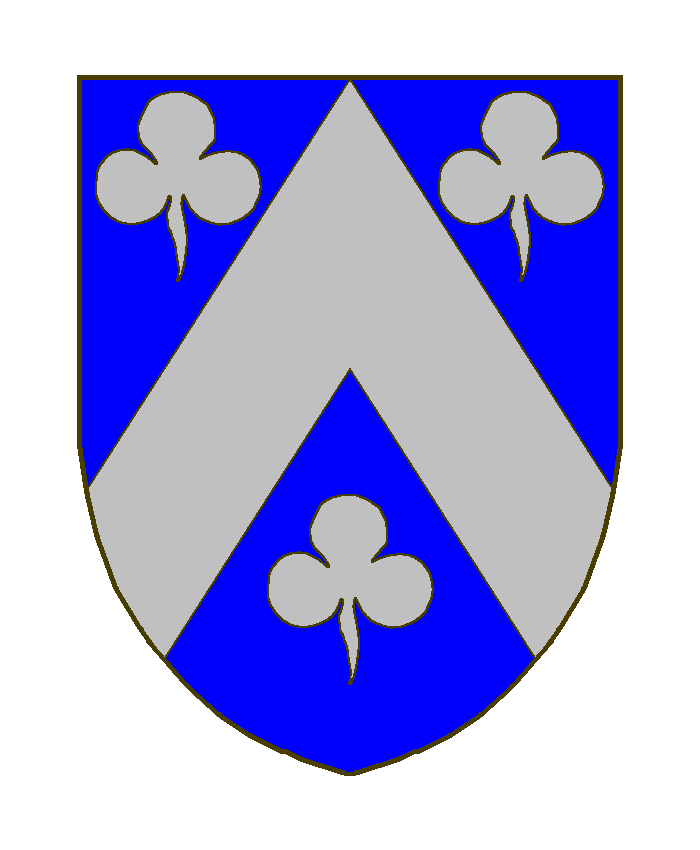 D’azur au chevron d’argent accompagné de trois trèfles du même (ou d’or?).