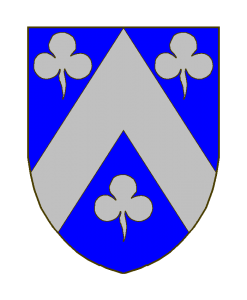 D’azur au chevron d’argent accompagné de trois trèfles du même (ou d’or?).