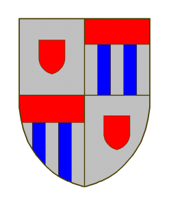 Écartelé: aux I et IV d’argent à un écusson de gueules en abîme, aux II et III d’argent à deux pals d’azur, au chef de gueules.