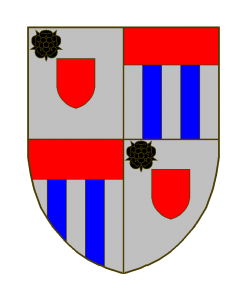 Écartelé: aux I et IV d’argent à un écusson de gueules en abîme accompagné au canton dextre du chef d’une rose de sable, aux II et III d’argent à deux pals d’azur, au chef de gueules.
