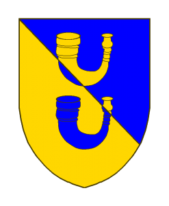 tranché d’azur et d’or, deux cornets de l’un en l’autre,Cimier: