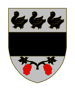 Hosseuse – variante 2 Sizes: 150 × 150 / 247 × 300 / 700 × 850 de Hosseuse - variante 2 Armes: D’argent à la fasce de sable, accompagnée en chef de trois merlettes du même, en pointe d’une branche de vigne de sable à deux grappes de raisin de gueules. Sources du Dr. Loutsch: (B.). Zitiert nach (Quelle): A.L. Seite 446