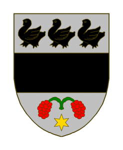 Hosseuse – variante 3 Sizes: 150 × 150 / 247 × 300 / 700 × 850 de Hosseuse - variante 3 Armes: D’argent à la fasce de sable, accompagnée en chef de trois merlettes du même, en pointe deux grappes de raisin de gueules, tigées de sinople, et une étoile à six rais d’or. Sources du Dr. Loutsch: (H.A.). Zitiert nach (Quelle): A.L. Seite 446