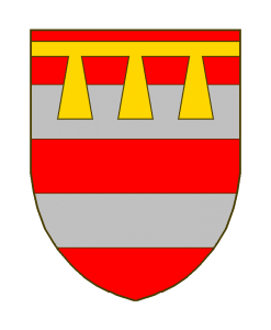 De gueules à deux fasces d’argent, au chef chargé d’un lambel d’or.