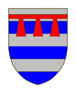 fascé d’azur et d’argent, brisé en chef d’un lambel à trois pendants (ou six) de gueules.