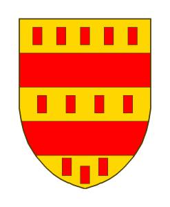 D’or à deux fasces de gueules, accompagnées de douze billettes (parfois couchées), du même, posées 5 – 4 – 3.