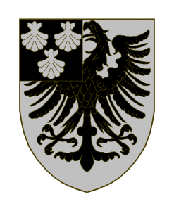 D’argent à l’aigle de sable, au franc-canton de sable à trois coquilles d’argent.