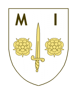 Une épée haute en pal, accostée de deux roses, la première surmontée de la lettre I, la deuxième de la lettre M.