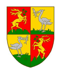 Un cerf naissant d’or, tenant trois trèfles de sinople dans sa bouche.