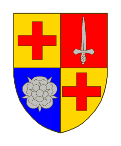 Écartelé: aux I et IV d’or à la croix alésée de gueules, au II des barons militaires (de gueules à l’épée haute d’argent), au III d’azur à la rose d’argent.