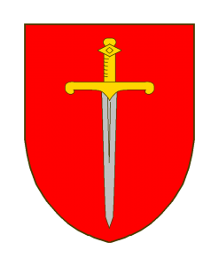 De gueules à une épée d’argent, la pointe en bas, la garde et la poignée d’or.