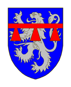 D’azur au lion d’argent, au lambel de gueules brochant (parfois le champ semé de fleurs de lis d’or).