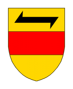 D’or à la fasce de gueules, accompagnée en chef d’un crampon de sable posé en fasce.