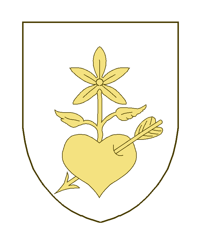 Un coeur traversé d’une flèche en barre, et de la boucle du coeur sort une fleur à cinq pétales, tigée et feuillée.