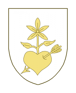 Un coeur traversé d’une flèche en barre, et de la boucle du coeur sort une fleur à cinq pétales, tigée et feuillée.