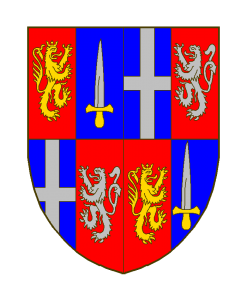Écartelé: aux I et IV parti, à dextre de gueules au lion contourné d’or, couronné à l’antique, à sénestre d’azur à l’épée d’argent garnie d’or, mise en pal; aux II et III parti, à dextre d’azur à la croix d’argent, à sénestre de gueules au lion d’argent, la queue fourchue et passée en sautoir.