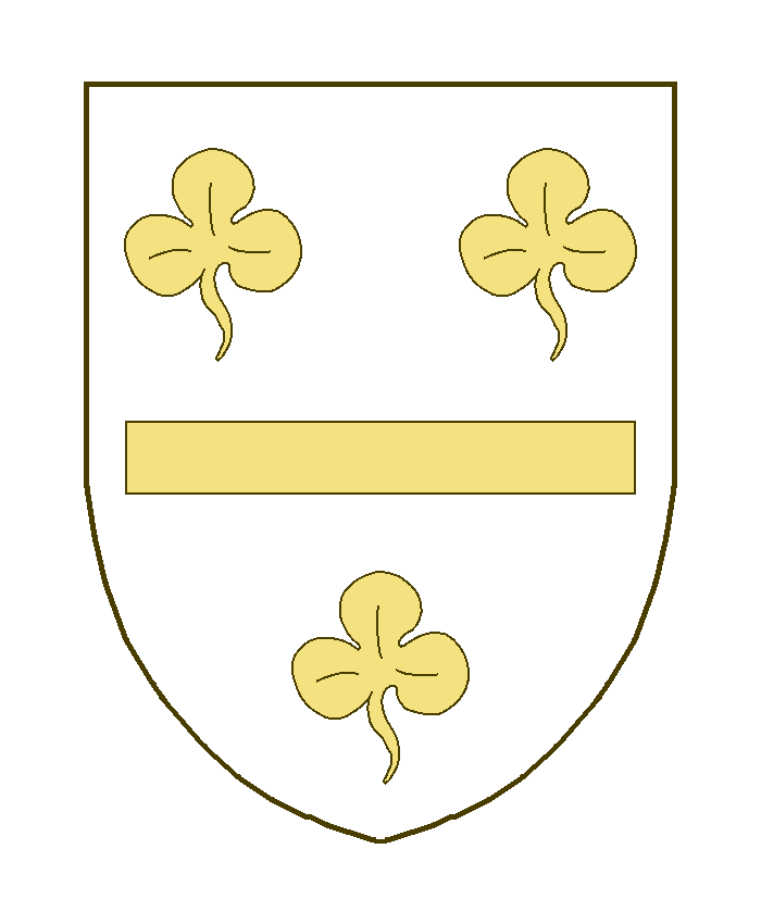 Un filet alésé en fasce, accompagné de trois trèfles.