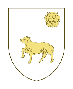 Un agneau passant, accompagné en chef à sénestre d’une rose.